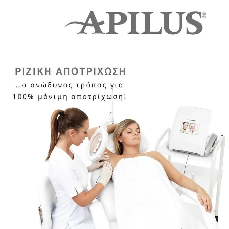 Με τη ριζική αποτρίχωση - ηλεκτρόλυση του συστήματος Αpilus, καταφέρνουμε μια αποτελεσματική, οριστική και σχεδόν ανώδυνη αποτρίχωση με βελόνα, σε όλες τις περιοχές του σώματος, απομακρύνοντας την ανεπιθύμητη τριχοφυΐα, ανεξαρτήτως του χρώματος ή της τραχύτητας της τρίχας.